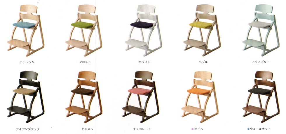アップライトチェア本体のボディカラーは楽しい全10色。さらに選べる座面カバーは全20色(ツミキ、ボンボンを含めると22色)。組み合わせで楽しさは無限大。あなた色のアップライトをご注文いただけます。