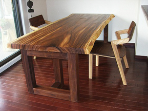 お客様が木彫りの達人で本物嗜好ということで、あえて天板のオーダーはなかったのですが、楡の一枚板を使…